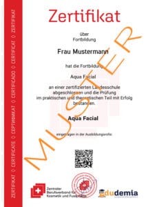 Nach erfolgreichem Abschluss erhalten Sie ein Zertifikat des Zentralen Berufsverbands, das Ihre Qualifikation als Aqua Facial-Expertin oder -Experte bestätigt.