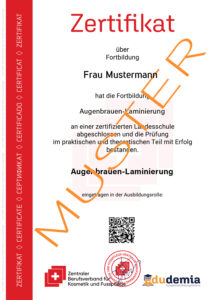 Nach erfolgreichem Abschluss der Schulung erhalten Sie ein Zertifikat des Zentralen Berufsverbands, das Ihre Qualifikation als Augenbrauen-Laminierung-Expertin oder -Experte bestätigt. Sie sind damit berechtigt, Augenbrauen-Laminierungen in Ihrem Studio anzubieten.