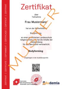 Nach Abschluss erhalten Sie ein Zertifikat des Zentralen Berufsverbands, das Ihre Qualifikation als Expertin für Bodyforming mit Vakuumtechnologie bestätigt.